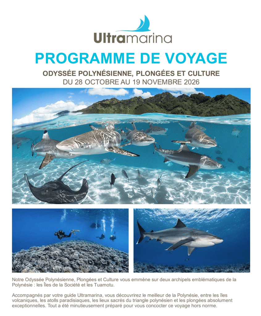 Le voyage est accompagné par Patrick et Francis du Scuba-Shop. Patrick connaît parfaitement la région de la Polynésie, il s’y est déjà rendu plus de 20 fois et a également travaillé comme guide pour l’agence de voyages Ultramarina. Il connaît très bien la culture, les sites de plongée ainsi que toute l’organisation.
